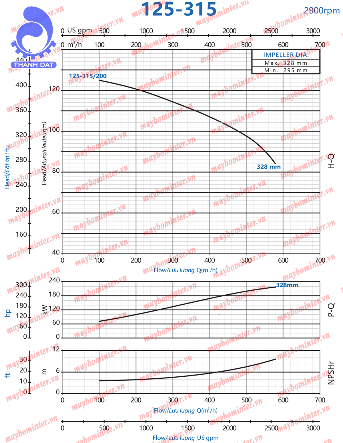 | Model đầu bơm | INTER CA125-315/200 |
