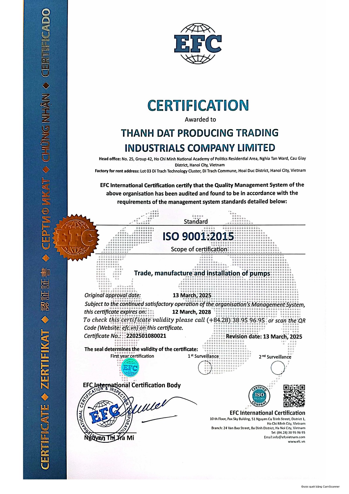 Thành Đạt là đơn vị cung cấp máy bơm lớn trên thị trường với: