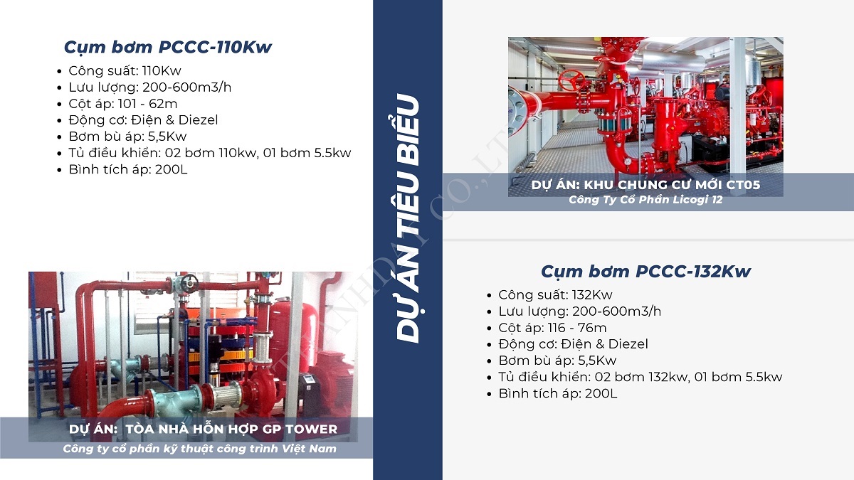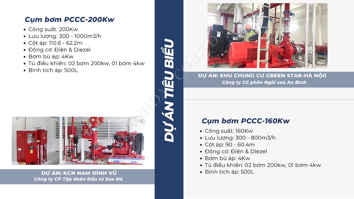 - Cung cấp máy bơm cứu hỏa cho các dự án PCCC.
